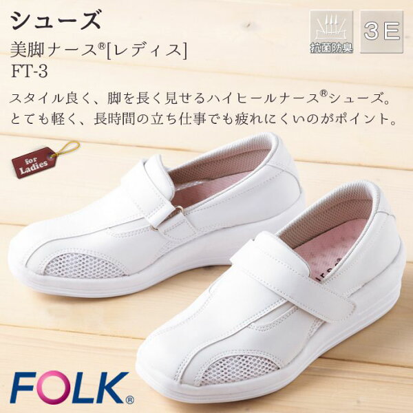 シューズ FT-3 美脚ナース 白衣 手術衣 女性 レディース 2wayタイプ 抗菌防臭加工 撥水加工 EVA ウイズ:3E ヒール:55mm 医療 医師 ドクター ナース 看護 病院/メディカル 制服 仕事服 FOLK/フォーク